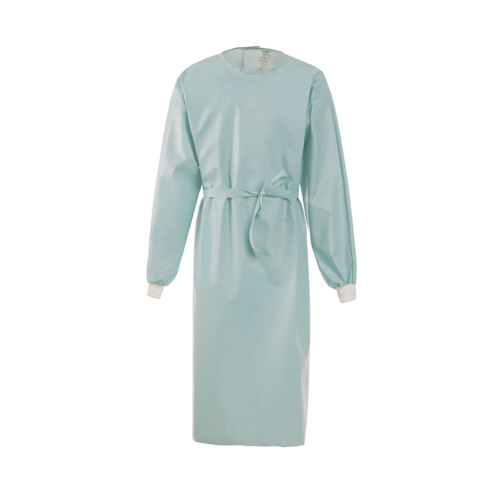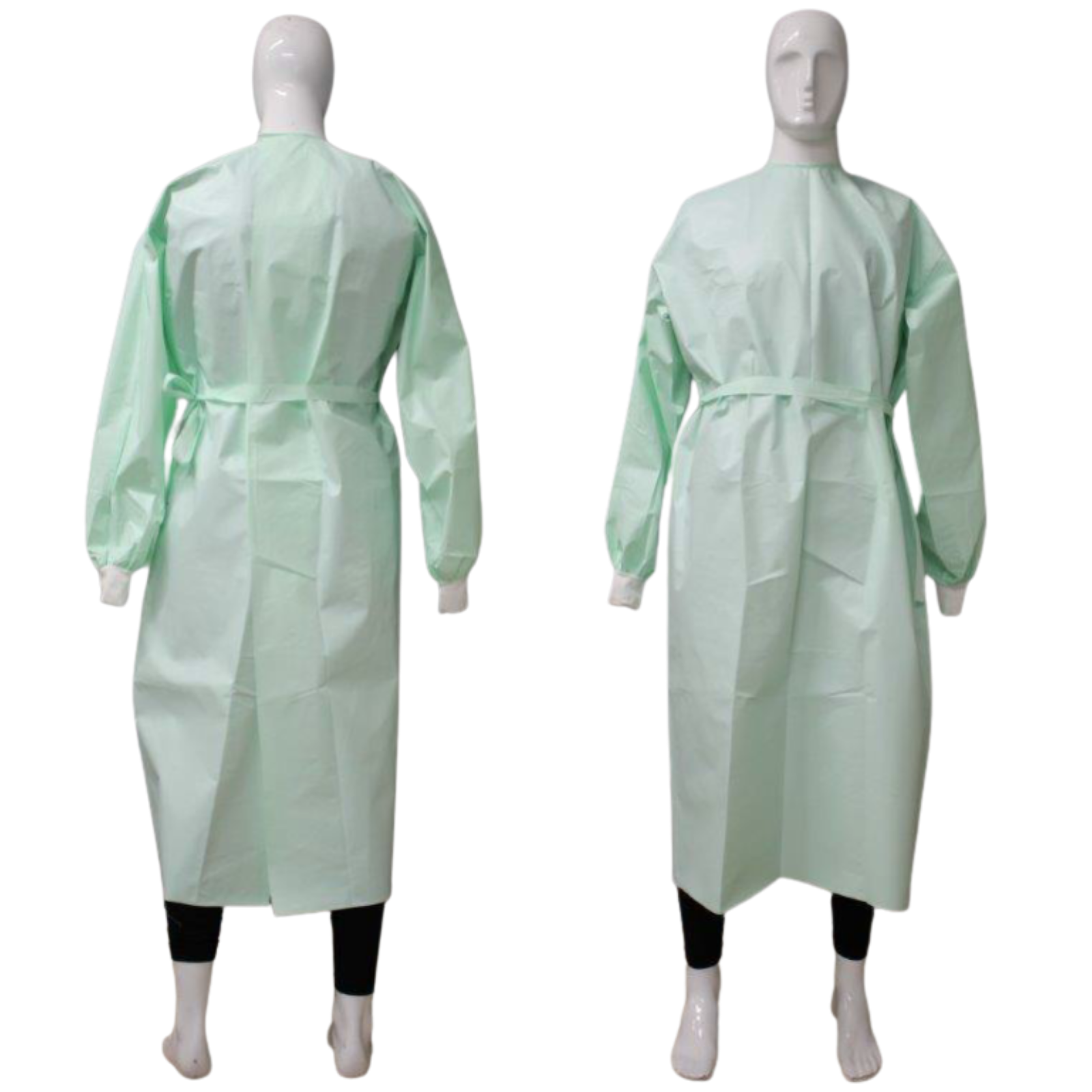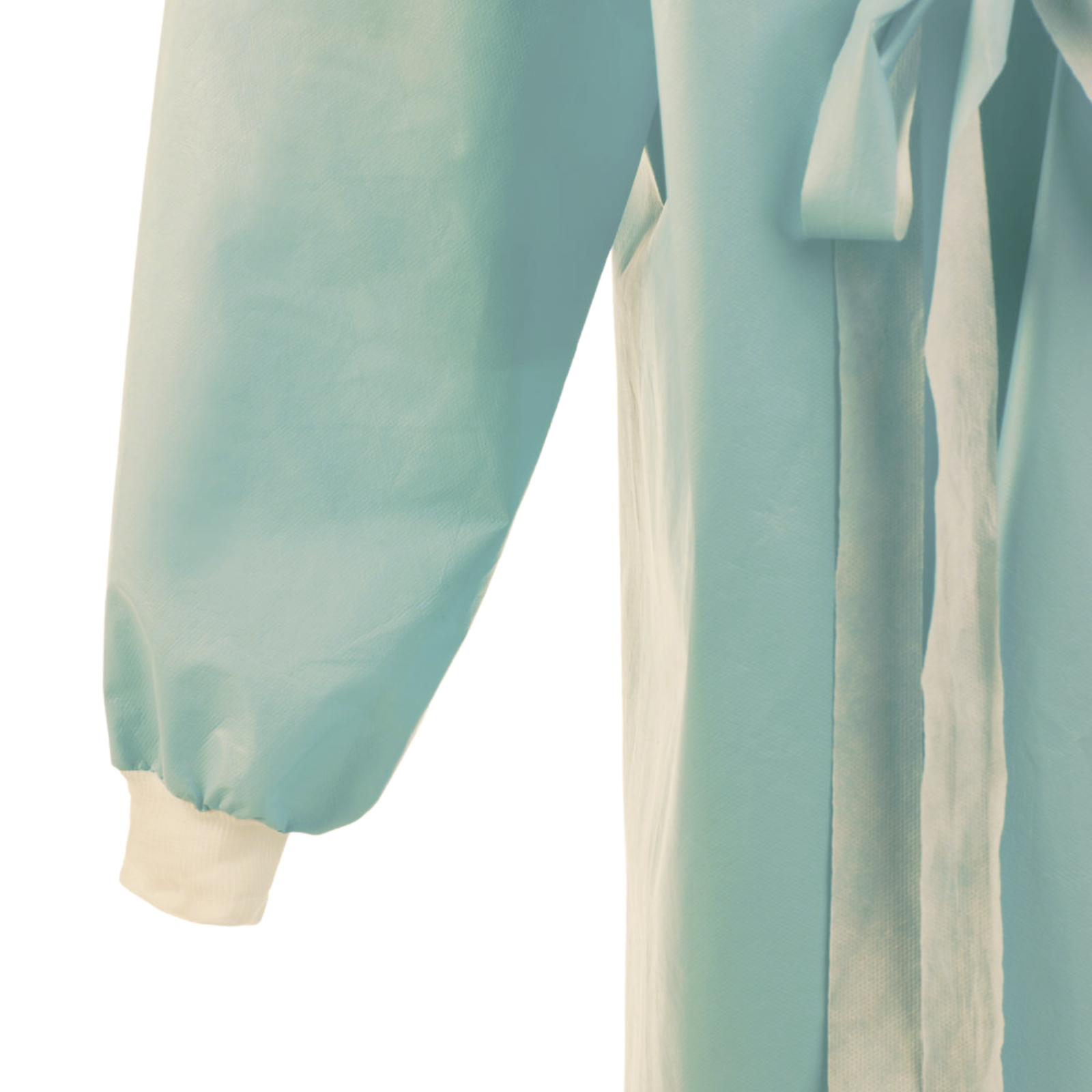 Camici in TNT monouso non sterili con polsini elastici ipoallergenici, a manica lunga.