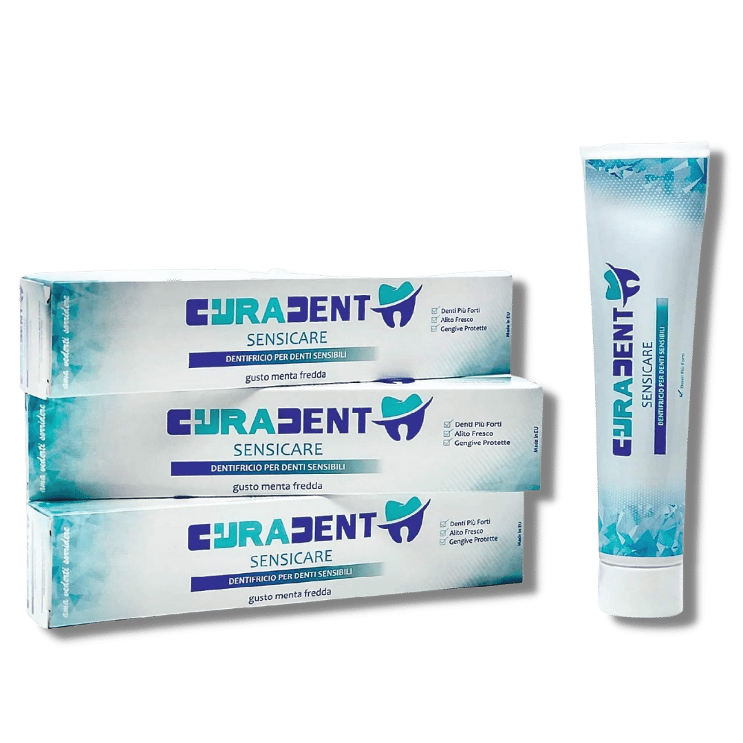 CuraDent® SensiCare è studiato per la protezione dei denti e per donare rapido sollievo dal dolore. Tra i suoi ingredienti ci sono potassio e fluoruro di sodio, che aiutano a ridurre la sensibilità minimizzando il dolore ed eliminando i fastidi.