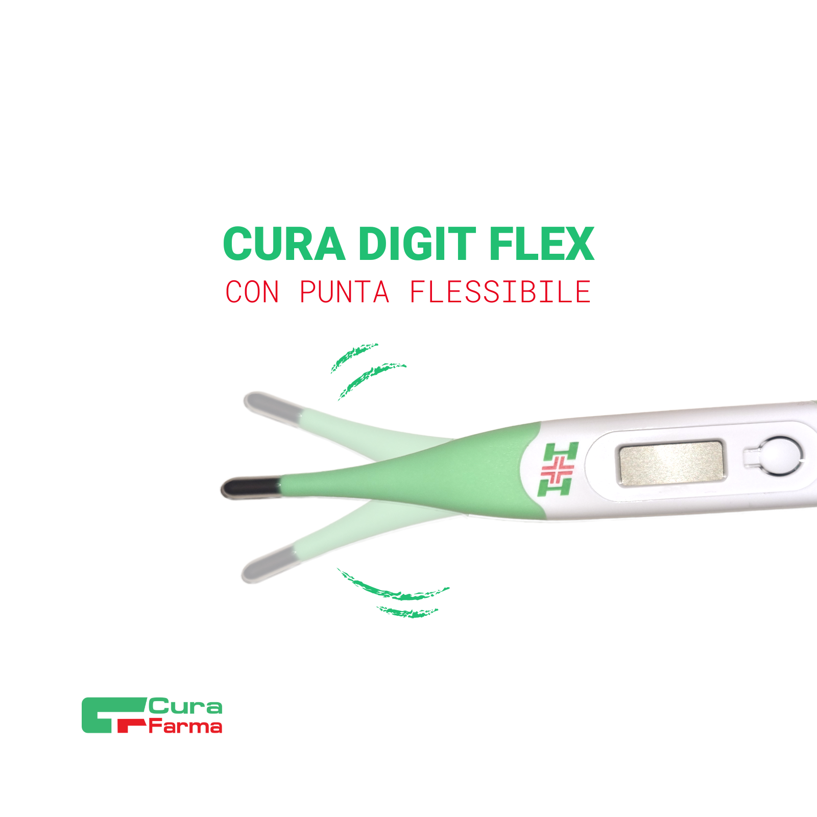 Termometro digitale con punta flessibile, dalla misurazione accurata e semplice. Ecologico. Facilita ancora di più la misurazione grazie alla comoda punta flessibile. Dotato di un display di chiara lettura, privo di mercurio. Conforme alle normative CE.