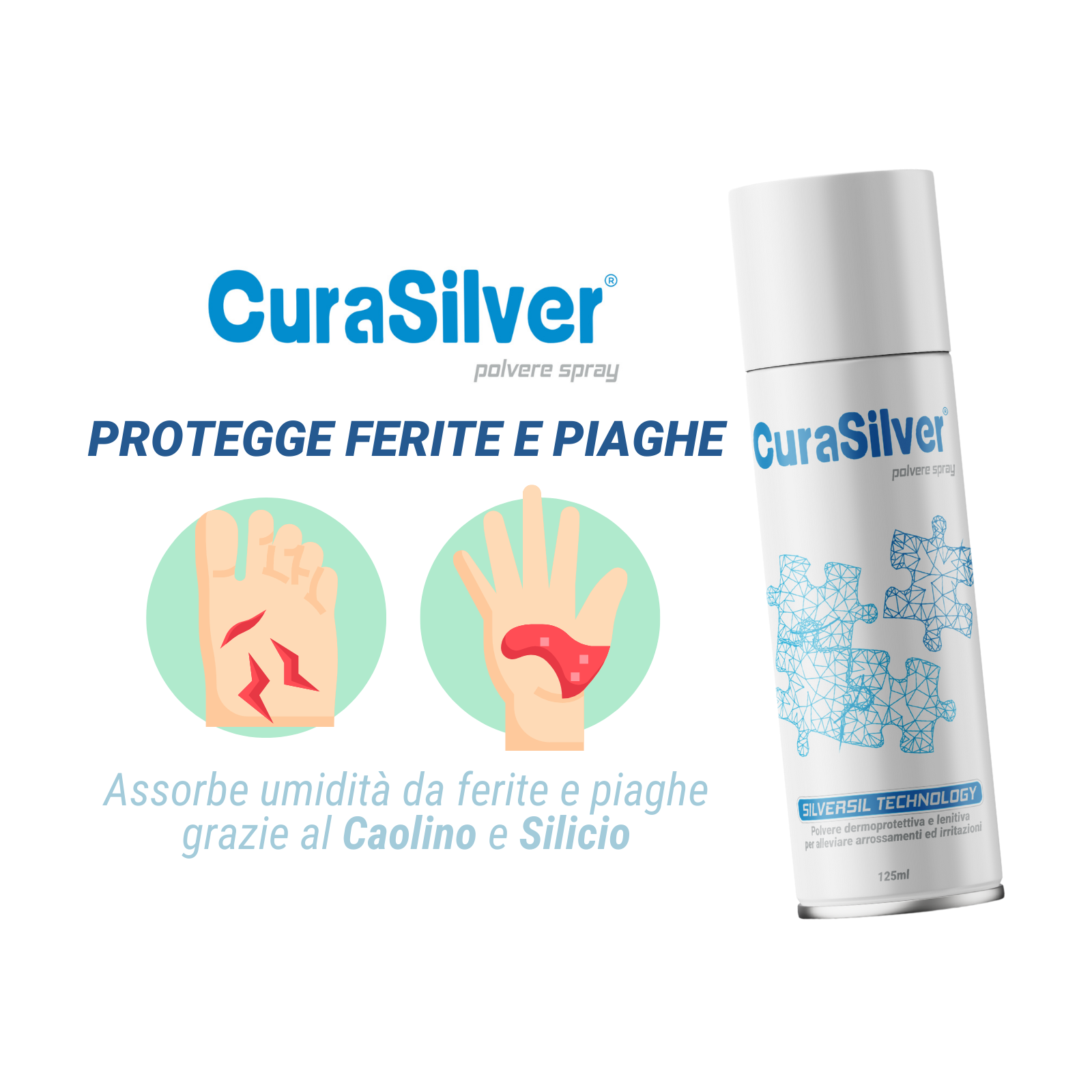✅ CuraSilver® polvere spray 125 ml è una polvere dermoprotettiva e lenitiva, basata sull’efficacia dell’innovativa Silversil Technology. Prodotto ideale per alleviare arrossamenti ed irritazioni, consente di ottenere un’efficace azione antimicrobica anche con applicazioni moderate.