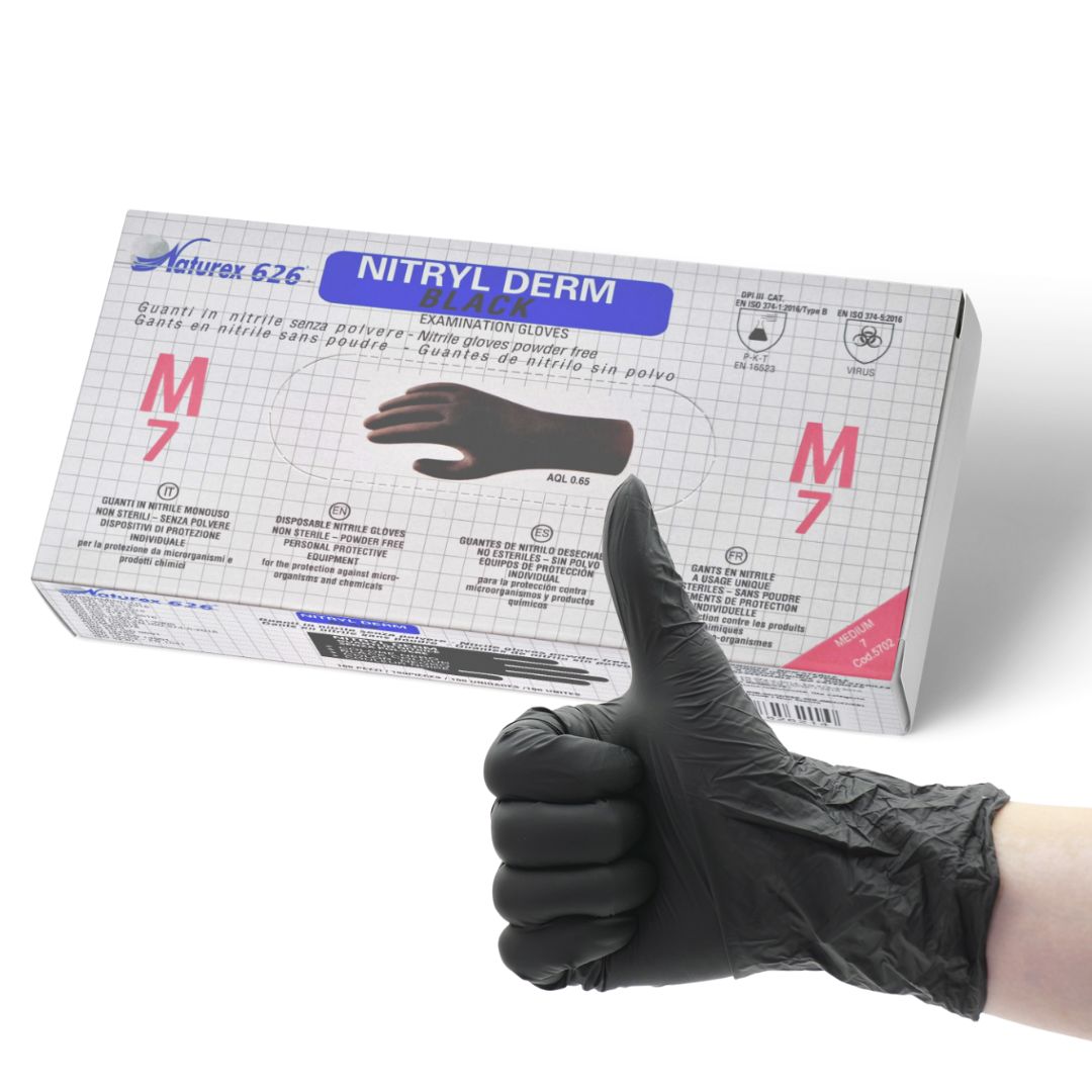 3 CONFEZIONI Guanti in Nitrile Nero Monouso da Lavoro Tattoo Estetica. Privi di Lattice e Polvere Talco. Confezione 100 pz Taglie S - M - L