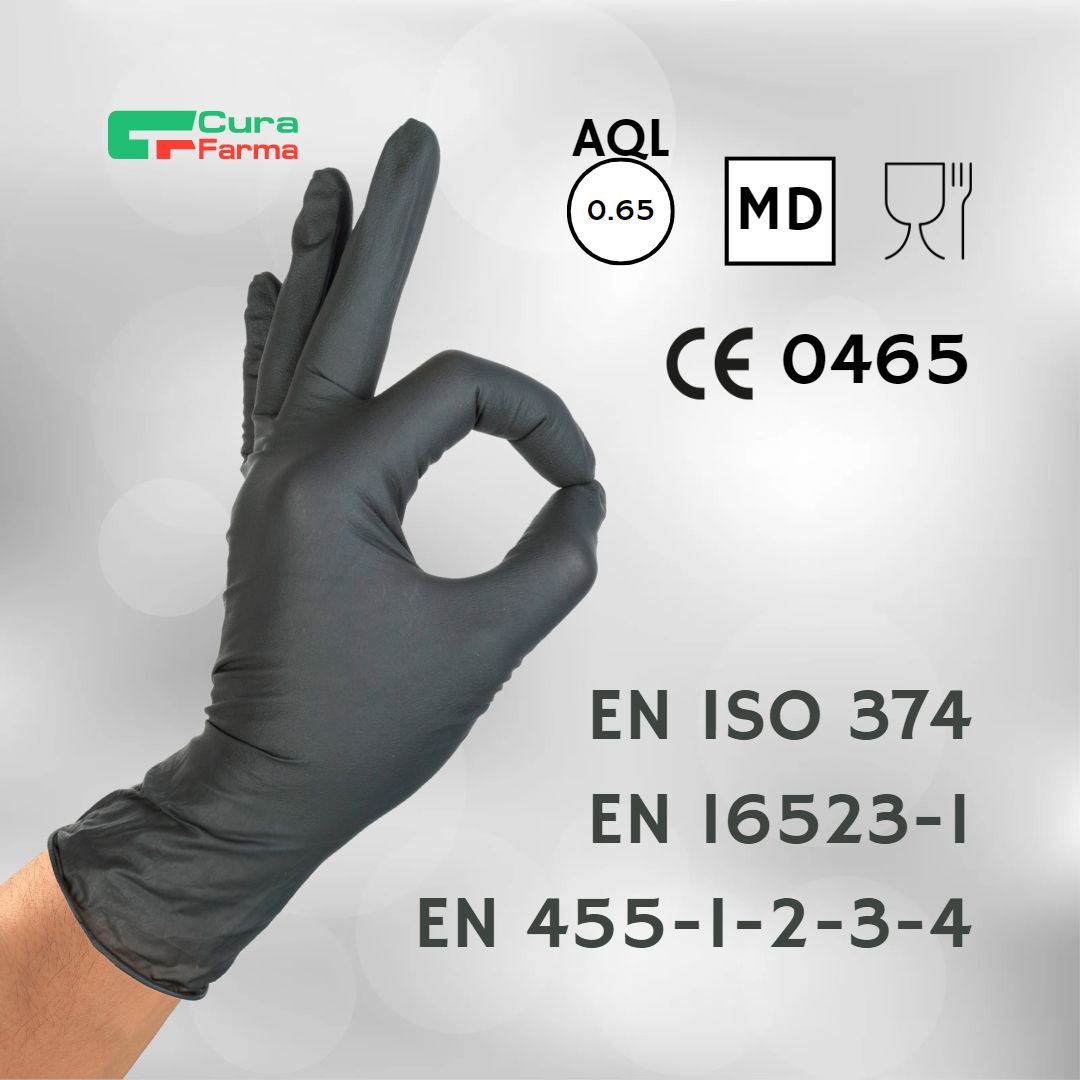 I guanti in nitrile NERI monouso, privi di polvere, offrono resistenza, durata e protezione contro le barriere. Con un rivestimento privo di polvere sulla superficie interna, questi guanti monouso sono sicuri da potenziali contaminazioni da polvere. Il materiale flessibile riduce il rischio di fatica durante l'usura prolungata.