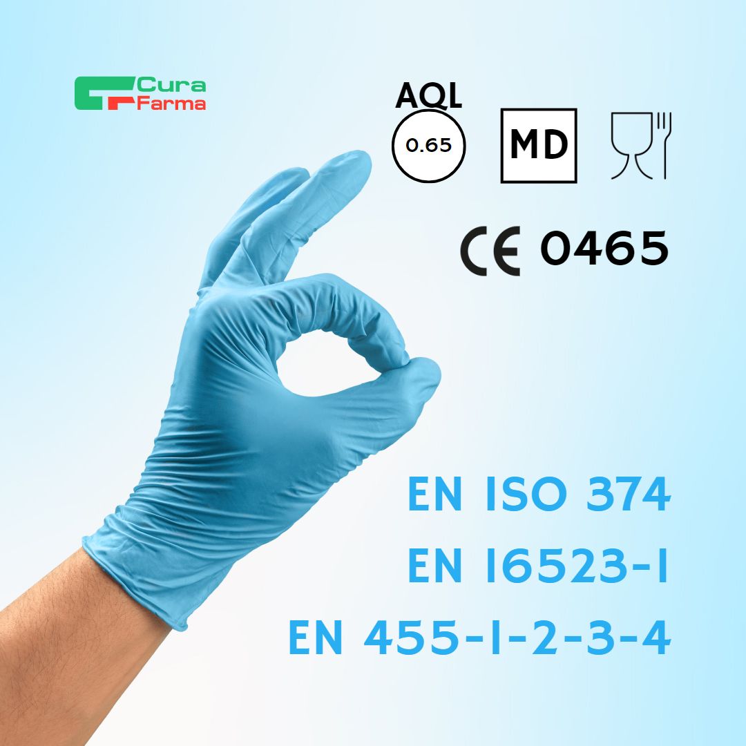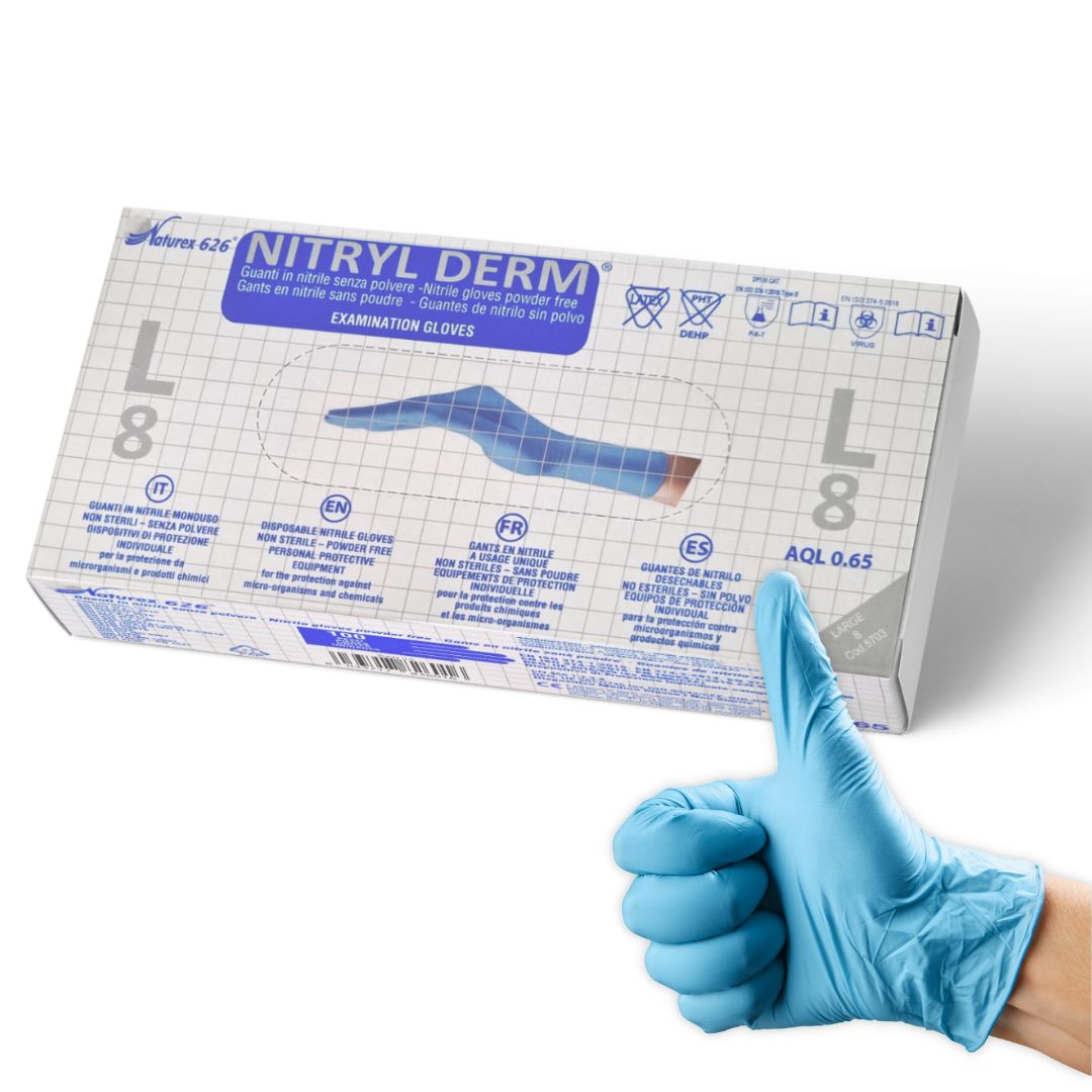 Guanti in Nitrile Blu Monouso da Lavoro Medici. Privi di Lattice e Polvere Talco. Confezione 100 pz Taglie S - M - L