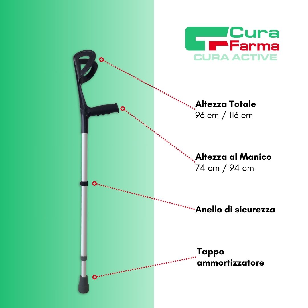 Cura Active 2 Stampelle Avambraccio Canadesi Regolabili, Allumino Leggero e Robusto
